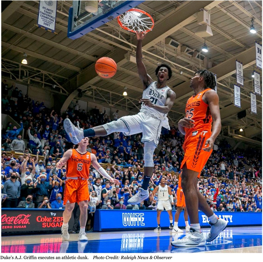 - AJ Griffin is recovering from a knee injury and only played 11 minutes, but nevertheless he really gave The Blue Devils a big lift. When totally healthy, he will be a major contributor in multiple ways.