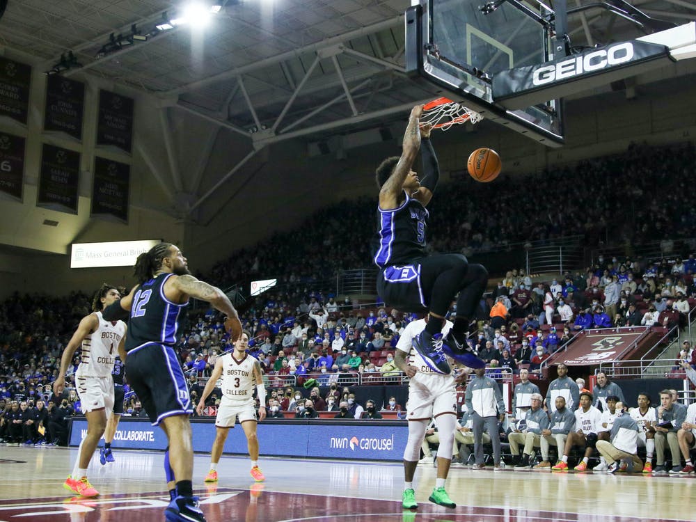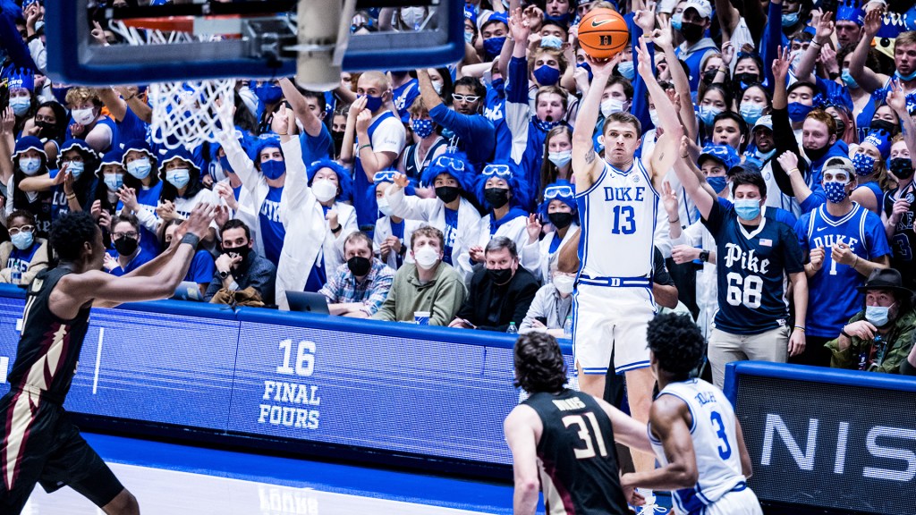 Duke led for most of the first half but struggled to pull away from its persistent opponent. That changed in a flash at the close of the first half, as the Blue Devils stretched a four-point lead to a 12-point halftime advantage in a breakneck final sequence highlighted by freshman guard Trevor Keels’ transition 3-pointer on a selfless assist from Paolo Banchero at the buzzer.